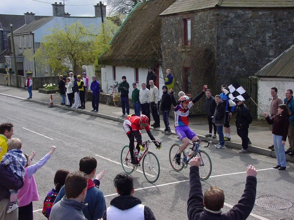 From high drama to hard-fought finishes, St. Tiernan’s Cycling Club has experienced it all. Over the past four decades, our members have competed, celebrated victories, endured losses, and persevered through every challenge the road racing scene could throw at us, both in Ireland and beyond. From the legendary Ras Tailteann to the iconic Gorey Three Day, from the Traders Cup to the Paddy’s Day Potato Race, our palmarès are far too extensive to capture here. Instead, enjoy these photos, which capture some of the unforgettable moments and the sheer joy we’ve shared along the way.